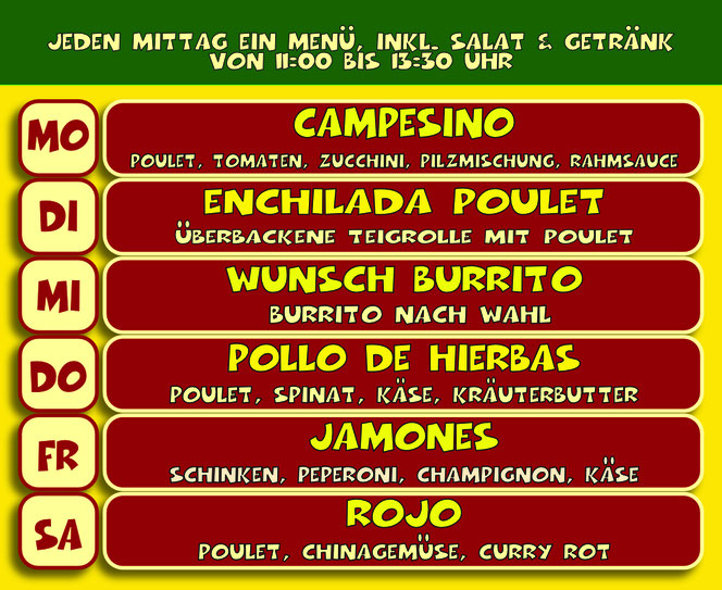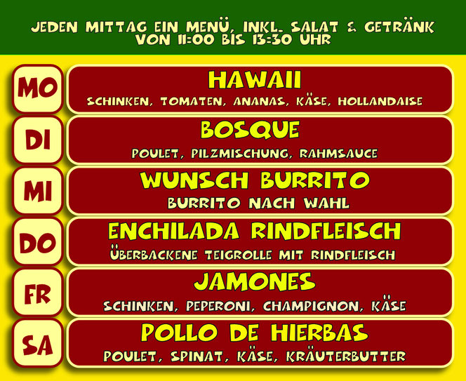 Jeden Mittag ein Menü inkl. Salat & Getränk